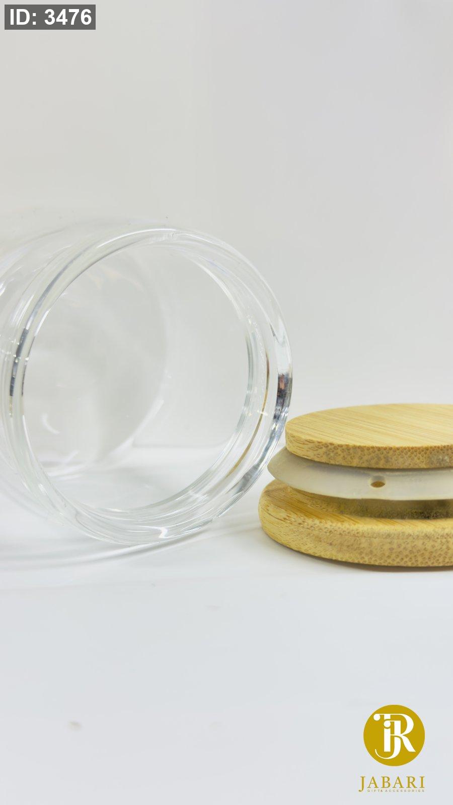 وعاء زجاج ثقيل غطاء خشبي ضغط (6.5*7.5 سم)