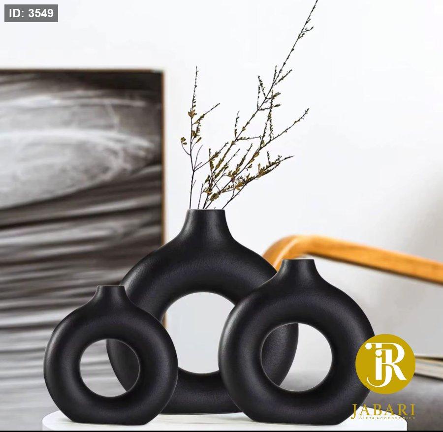 مزهرية دونات اسود ( طقم 3 قطع ) كود 4