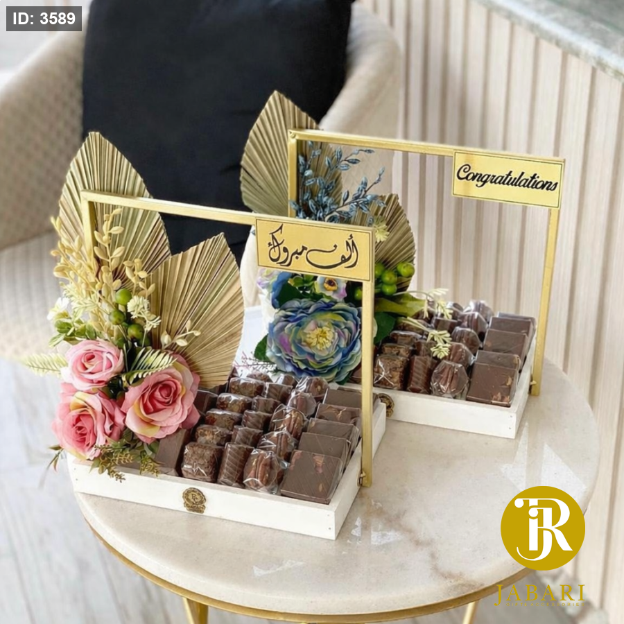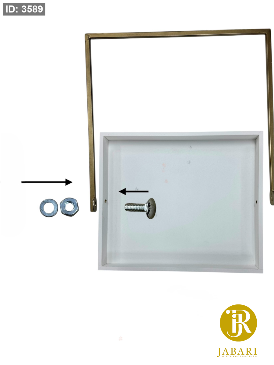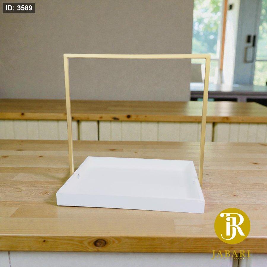 صواني خشب ابيض مع يد معدن ذهبي (35*35 سم)