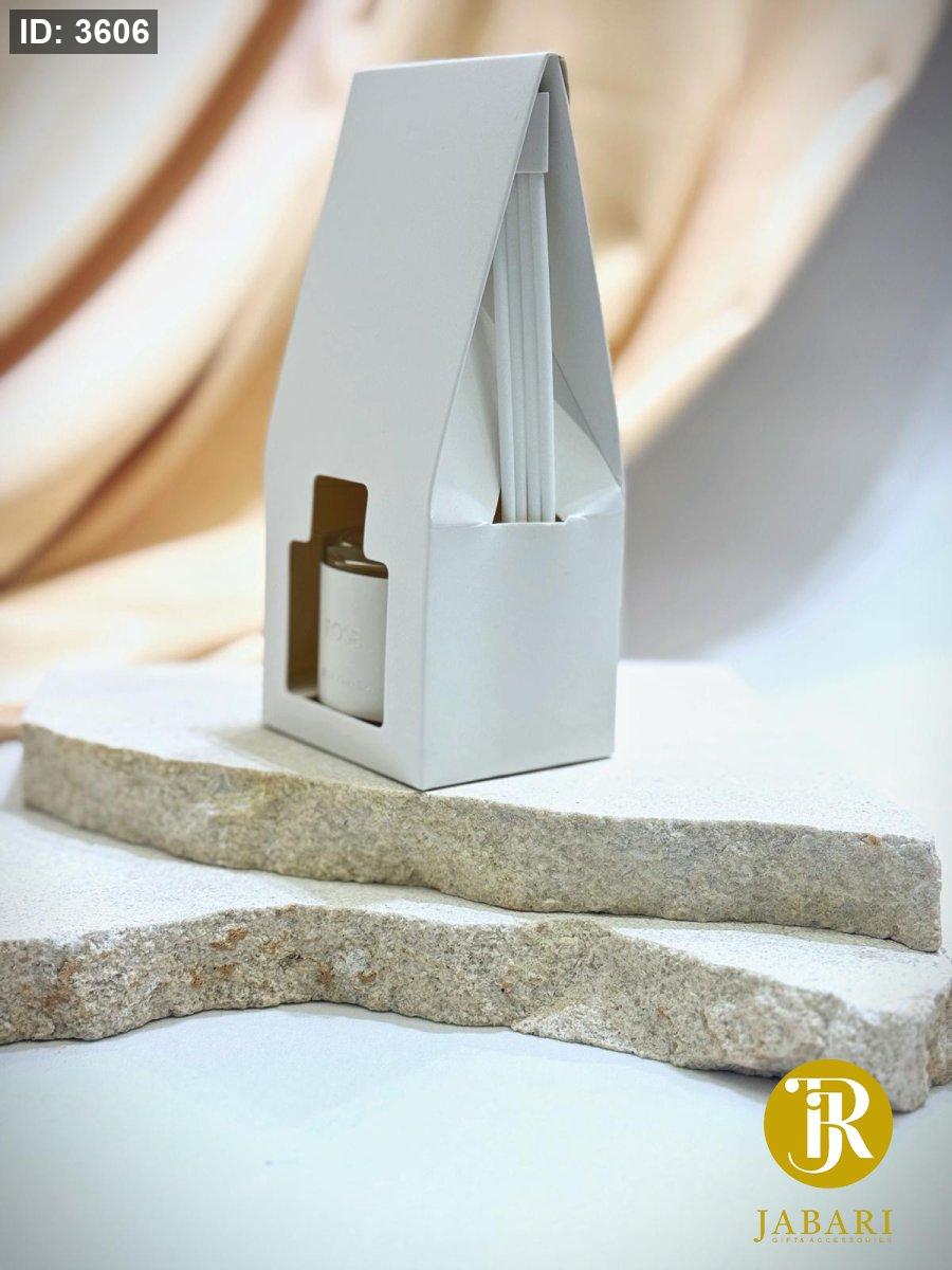 فواحة زجاج مع عطر 50ml & تغليف هرمي باللون الابيض